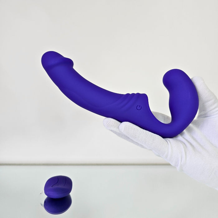Hecho en silicona medicada, el cual es el material más suave y amigable con el cuerpo, este juguete tiene un diseño en el que su lado más corto cuenta con una curvatura y espacio que permite que, al ser penetrado en el canal vaginal, este se "abrace" y sostenga de la misma zona íntima femenina, haciendo la función de un strap-on sin correa o tirantes, por lo que quien lo lleva puesto sentirá todo el tiempo una intensa estimulación en punto G mientras penetra a su pareja, logrando una experiencia mucho más que satisfactoria.